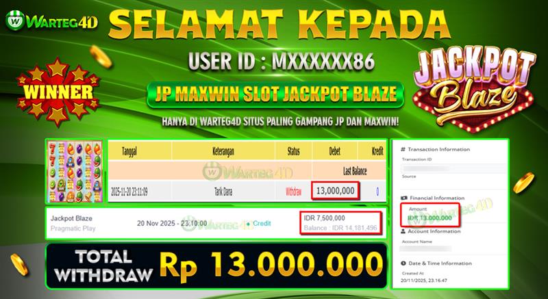 Hadiah telah di WD (Withdraw) oleh player yang bersangkutan Terima kasih untuk member setia kami telah mempercayakan (WARTEG4D) sebagai BO pilihan anda. Post navigation TIDAK HANYA OMONG KOSONG WARTEG4D MEMANG GACOR !!! TIDAK PERLU KATA KATA KEMENANGAN DI WARTEG4D ADALAH BUKTI NYATA !!!