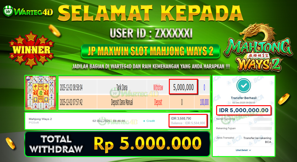 Hadiah telah di WD (Withdraw) oleh player yang bersangkutan Terima kasih untuk member setia kami telah mempercayakan (WARTEG4D) sebagai BO pilihan anda. Post navigation SUDAH PASTI SALDO MENGALIR BERMAIN HANYA DI – WARTEG4D WUJUDKAN KEINGINANMU DENGAN BERMAIN HANYA DI – WARTEG4D